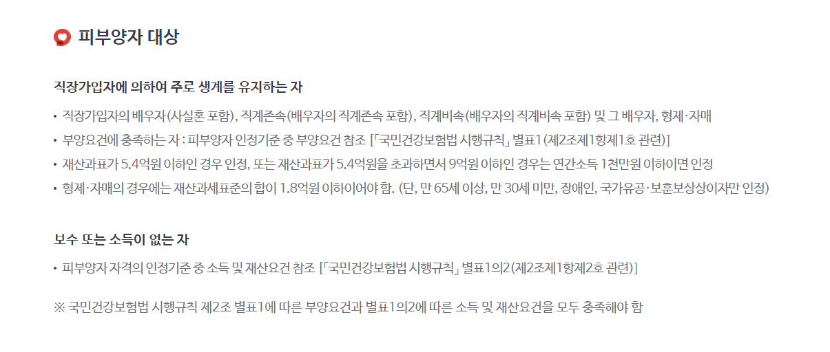 건강보험 피부양자 등록을 위한 자격 조건은?