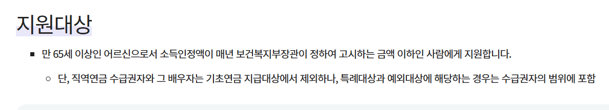 ✔️ 직역연금(공무원·사립학교교직원·군인·별정우체국 연금) 수급권자와 그 배우자는 대상에서 제외됩니다.