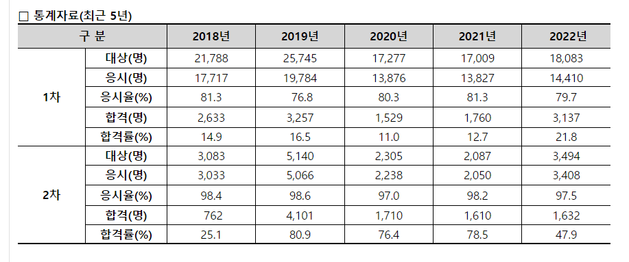 ✔️ 2차 시험 합격률 또한 50% 이하로 낮습니다.